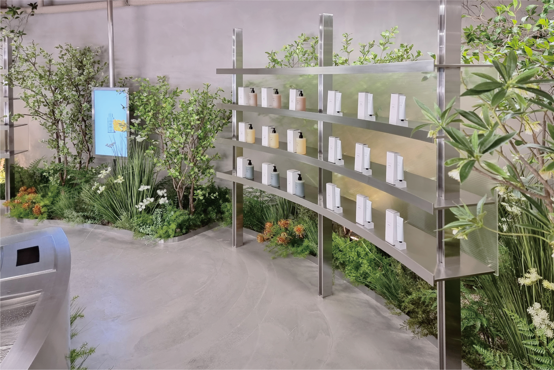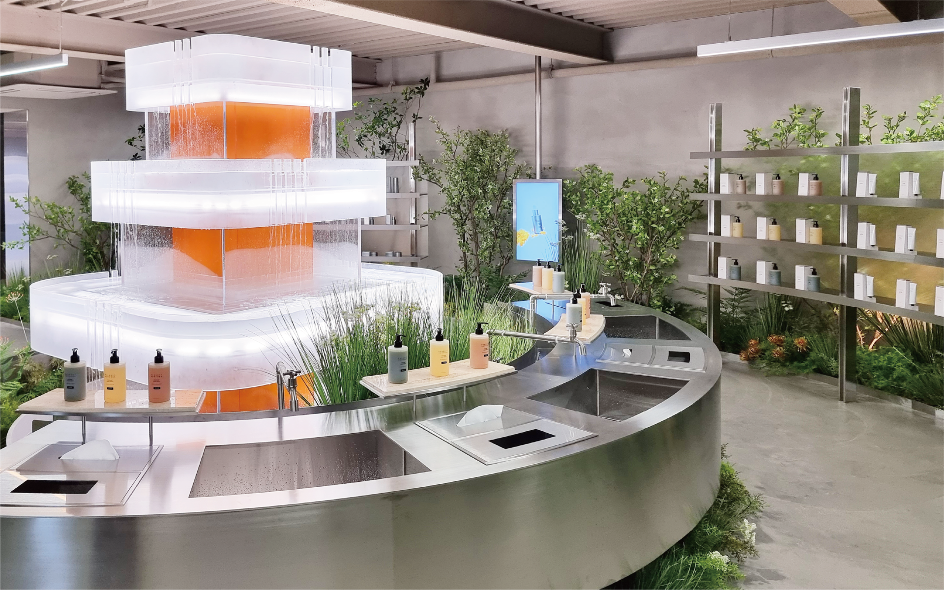 분수대 제작 · 아크릴, 목가구 설계 및 제작 · VMD 집기 디자인 및 제작 · 시공