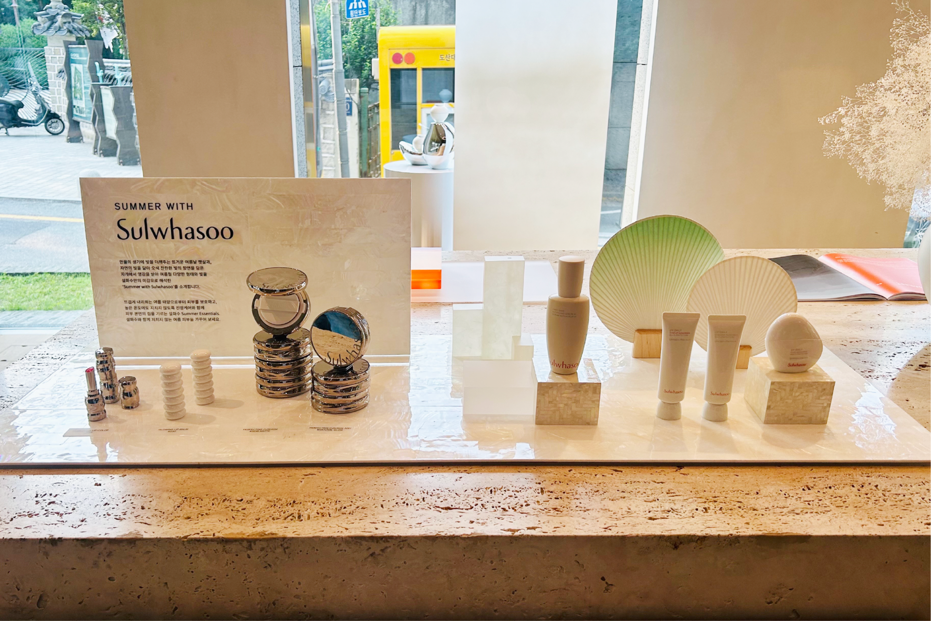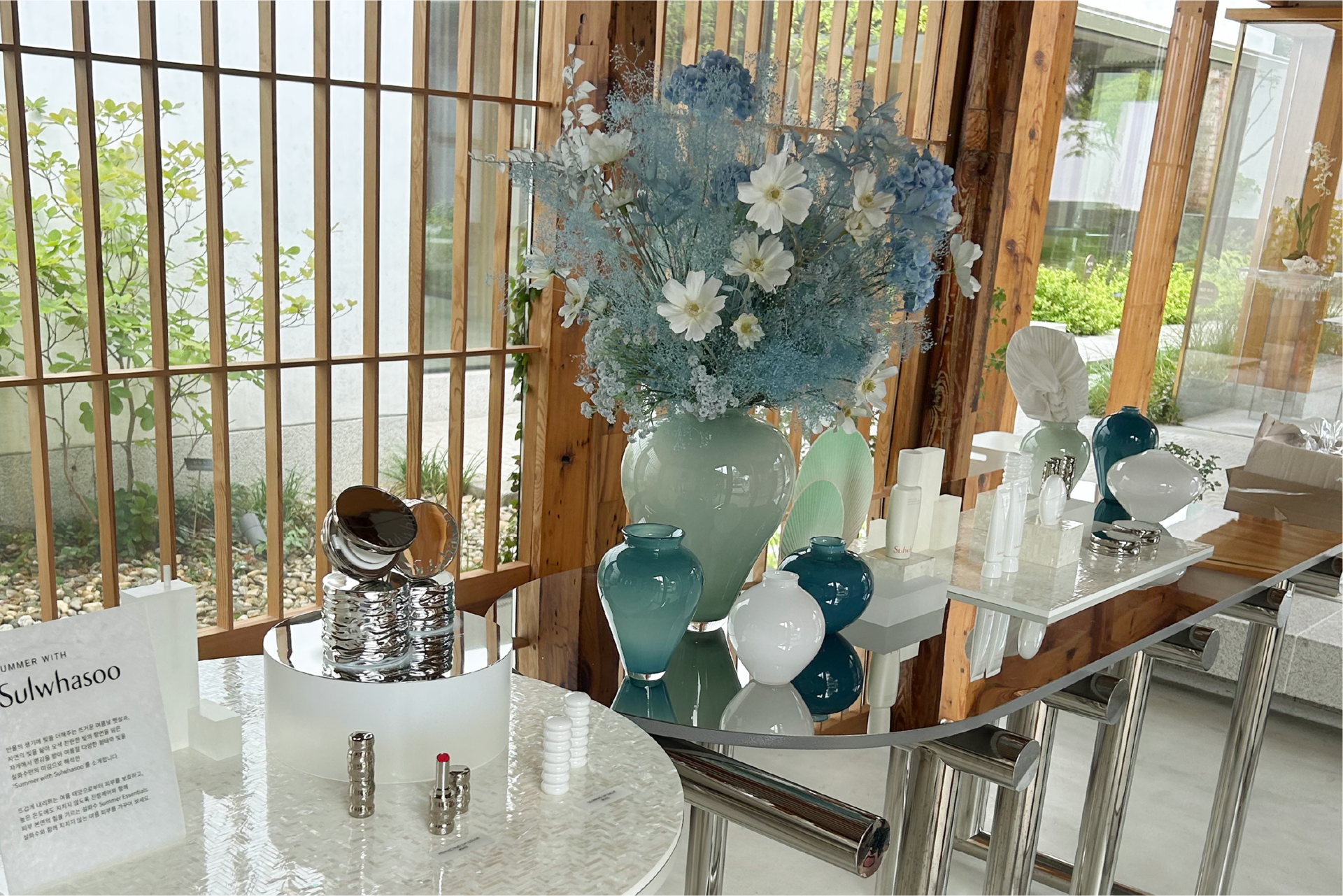 설화수 북촌공간 구성 · 시트 컷팅 제작 및 인쇄 · VMD 집기 디자인 및 제작 · 시공